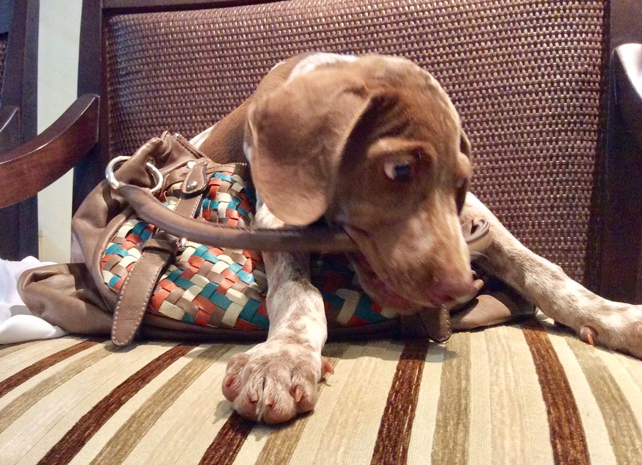 Após uma semana de internação e bem doentinho com parvovirose, finalmente me recuperei! Estava muito ansioso para conhecer meu novo lar, minha mãe já me dizia que eu faria parte de uma GRANDE FAMÍLIA!!! Na minha nova casa havia OITO irmãos caninos e DOIS irmãos humanos... ela também me contou que precisava convencer o papai a me deixar ir... pois ele sempre falava: “Se entrar mais um cachorro nesta casa, eu saio!!!”.... mas aí mamãe dizia: “Olha como o Max é lindo... papai não vai resistir a tanta fofura!” E foi exatamente o que aconteceu, quando papai me viu, já amoleceu o coração... me pegou no colo e suspirou: “Ai... como ele é lindo!”, a partir daí foi só alegria, cheguei em casa e já comecei a aprontar... minha nova família era muito divertida e já comecei a me divertir também: olha eu ali comendo a alça da bolsa da mamãe, já no meu primeiro dia em casa!!!